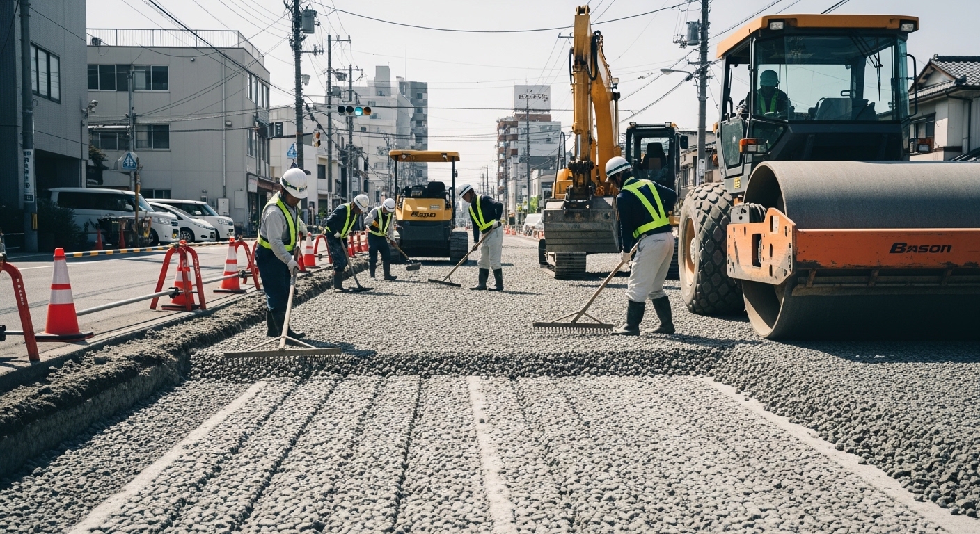 現場の規模によっては、これらを数日に分けて施工し、周辺交通に配慮しながら段階的に進めていきます。