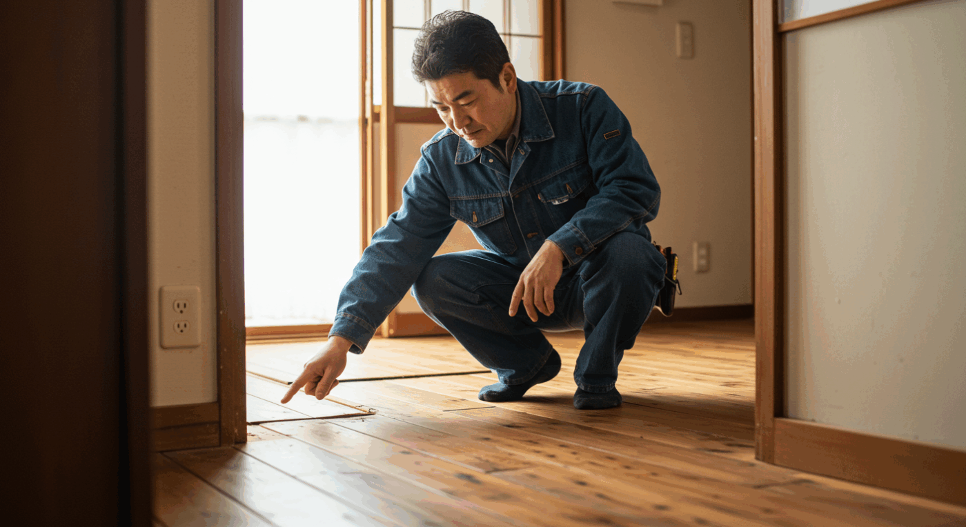 こんにちは!株式会社植田建設です🏗️ 「歩くたびに床が鳴る…」「夜中にギシギシ音がして気になる…」そんなお悩みはありませんか?床のきしみ音は、多くのご家庭で起こる身近なトラブルです。今回は、床がギシギシ鳴る原因から、具体[続きを見る]